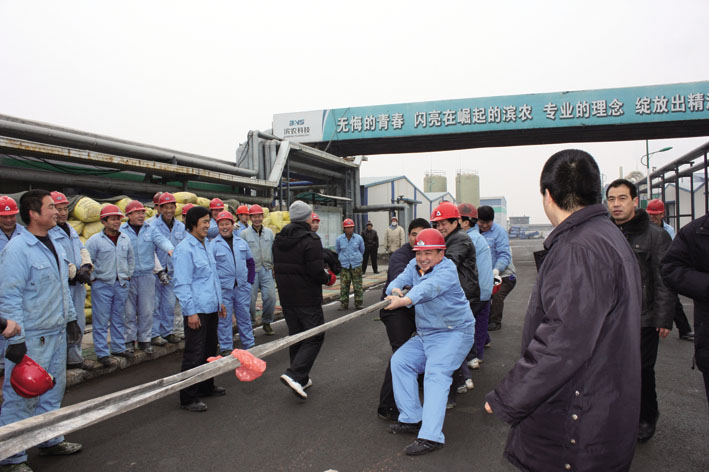 2010年 2月7日上午,二分廠懸浮劑車間舉辦了2010年第一屆車間趣味運(yùn)動(dòng)會(huì),二分廠廠長(zhǎng)鄭軍做了賽前講話。比賽分為三個(gè)環(huán)節(jié):第一項(xiàng)拔河比賽,體現(xiàn)團(tuán)隊(duì)精神。第二項(xiàng)綁腿跑比賽,體現(xiàn)協(xié)作能力和技巧。第三項(xiàng)滾大桶比賽,考驗(yàn)賽手掌握技巧能力。比賽競(jìng)爭(zhēng)激烈,各選手備戰(zhàn)十足。拔河比賽最終由牟俊龍、王朋會(huì)、呂清華、聶國(guó)俊、劉亞臣、孫大慶、孟祥輝、劉衛(wèi)東、付志樂、王汝江十名員工奪冠;綁腿跑比賽由趙洪泉、李樹泉;李偉松、崔連友;王汝江、薛呈濱三組員工榮獲前三;滾大桶比賽中,陳會(huì)永、宋建永、周洪星三人脫穎而出。