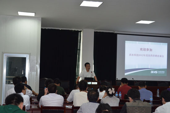 會議由采購部經(jīng)理王銀鋒主持,副總經(jīng)理閆勇致歡迎詞,就國內(nèi)外原藥近幾年的現(xiàn)狀及未來發(fā)展趨勢做了詳細分析,并指出了今后原藥市場發(fā)展的方向。原藥部經(jīng)理孫朝星為來賓詳細介紹了濱農(nóng)的發(fā)展歷程,近幾年國內(nèi)外市場齊頭并進蓬勃發(fā)展的現(xiàn)狀。供應(yīng)商代表京博農(nóng)化科技股份有限公司總經(jīng)理戴榮華、采購商代表山東三農(nóng)生物科技有限公司董事長吳文廷結(jié)合與濱農(nóng)多年的合作情況,做了典型發(fā)言。
